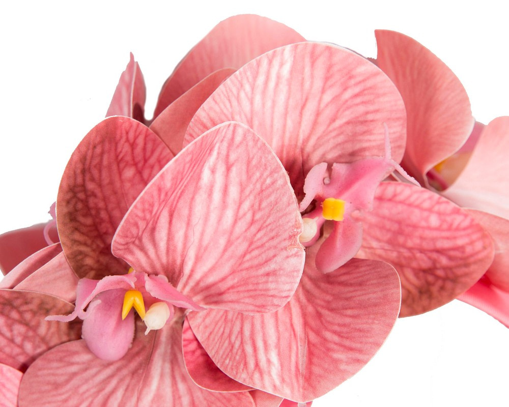 Very realistic looking orchid flowers placed on the headband. Unique material looks and feel like real flower.
