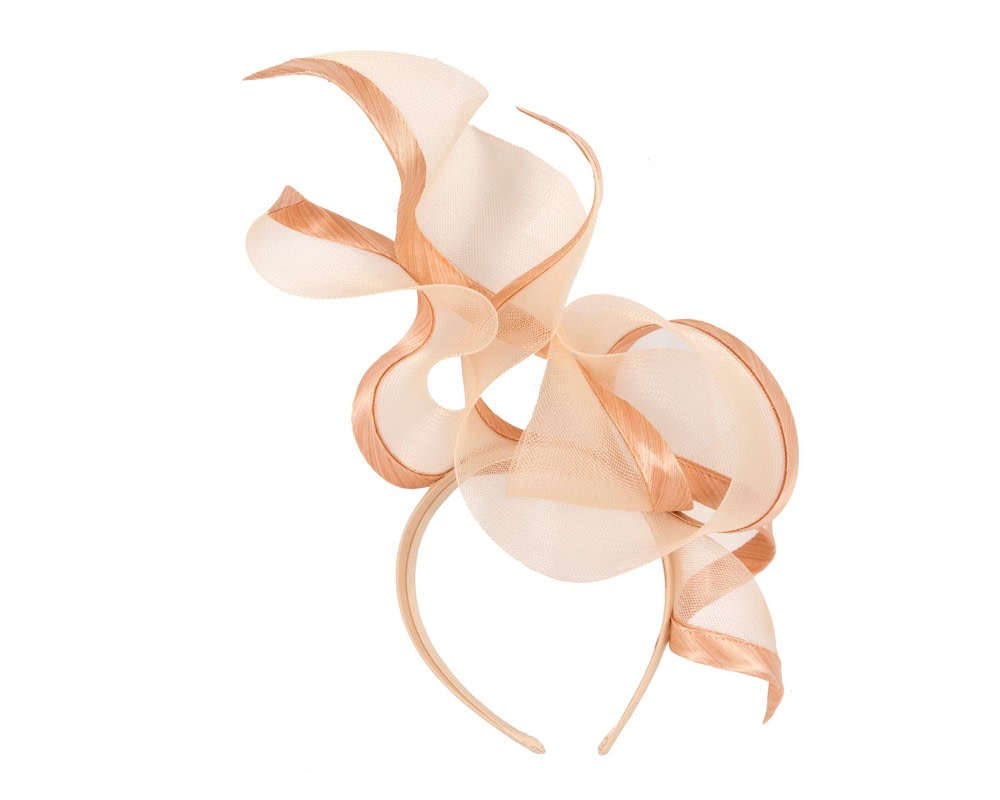 Bespoke nude racing fascinator from Fillies Collection by Cupids Millinery Melbourne. Exclusive creation that looks like a flame placed on the headband. Perfect choice for your next spring racing outfit.