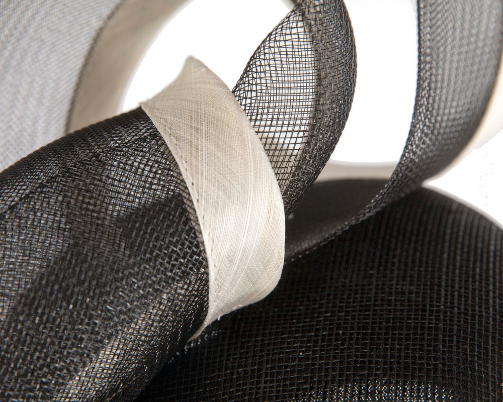 Created in the heart of Melbourne, this black racing fascinator sports small sinamay pillbox decorated with hand-made crinoline wave with cream outline.
