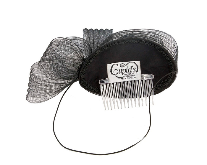 Beautiful black cocktail fascinator hat with elegant trim from our beautiful range of cocktail and special occasion hats.