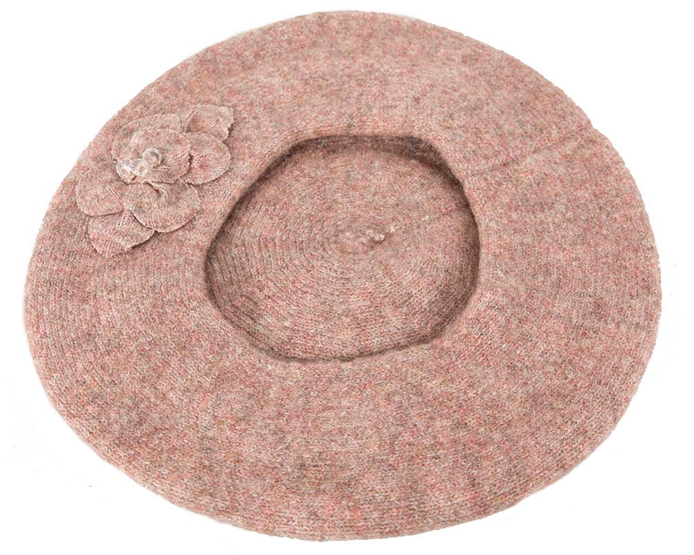 Elegant beige beret with flower trim will warm you up in those cold winter months.