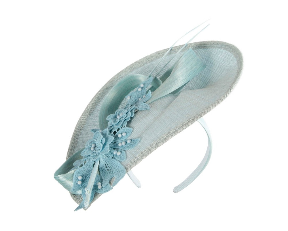 Exclusive light blue sinamay fascinator by Cupids millinery