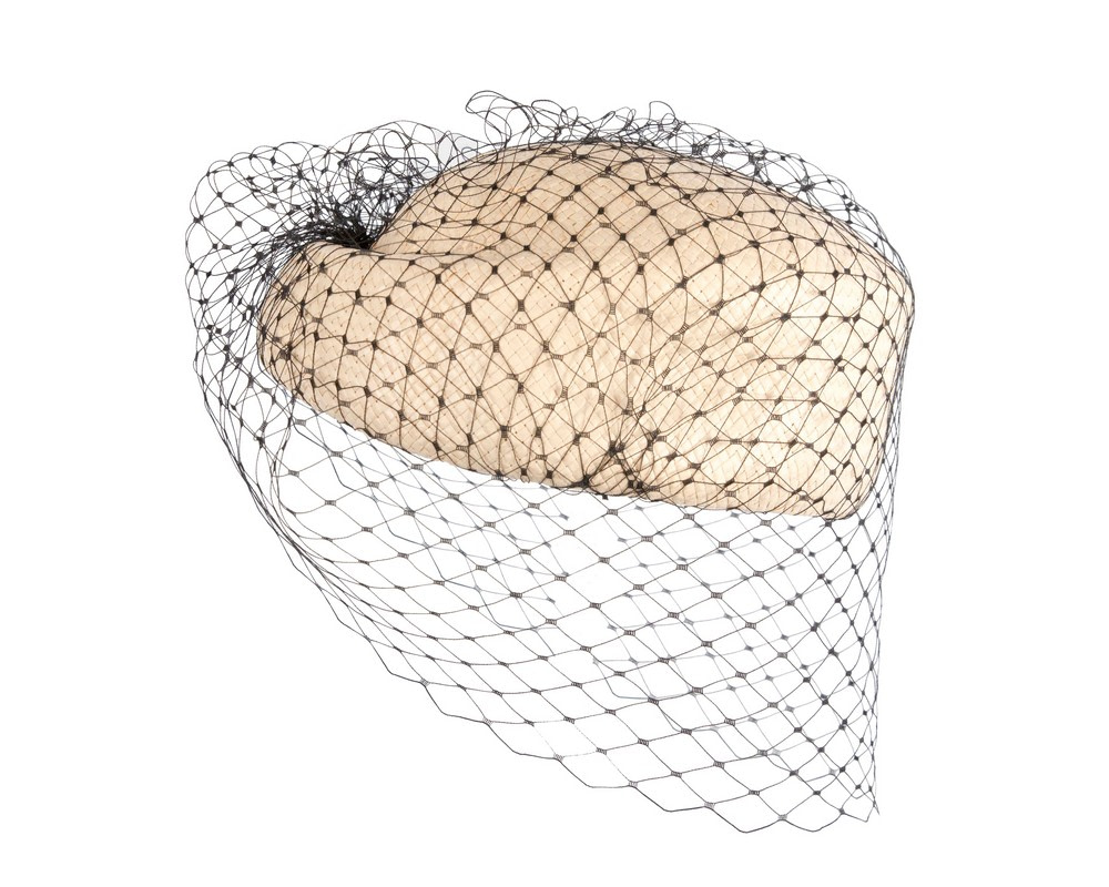 Exclusive nude pillbox hat with veil by Cupids Millinery