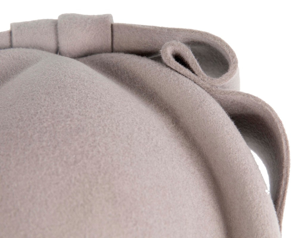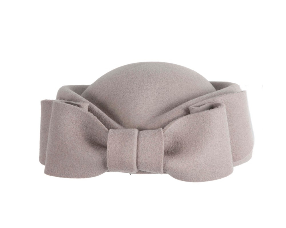 The softly contoured crown is framed by a wide felt band, finished with a sculpted bow detail that adds depth without overpowering the shape. The result is a balanced, versatile piece that works effortlessly with coats, racewear, or smart casual outfits.