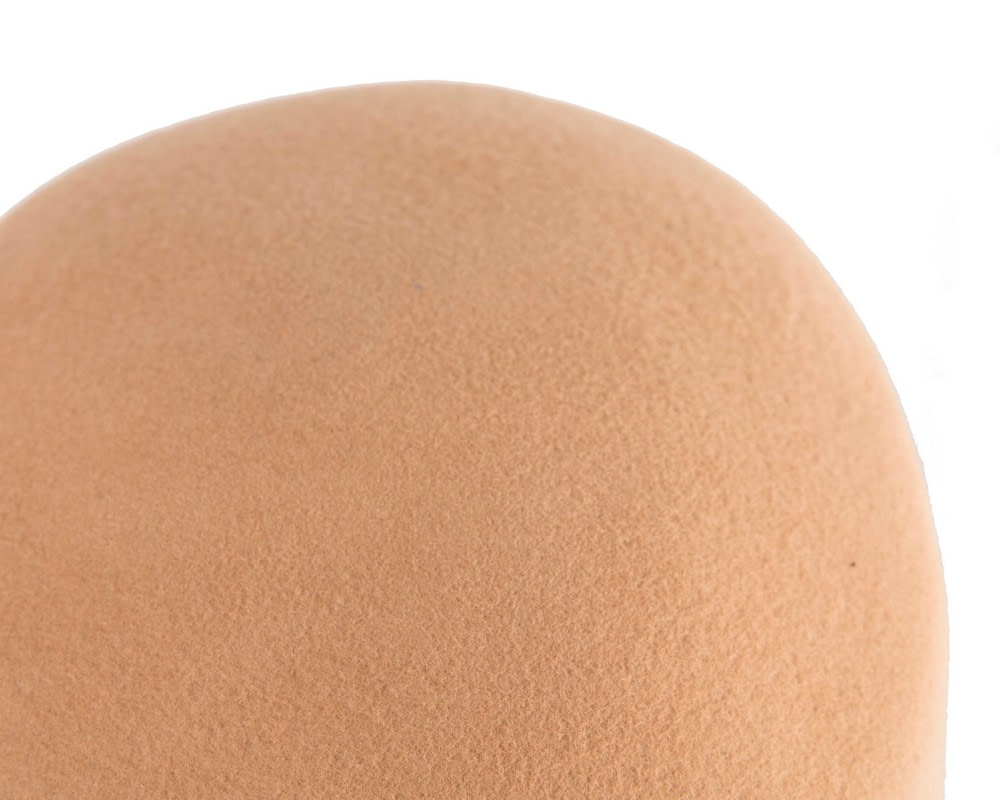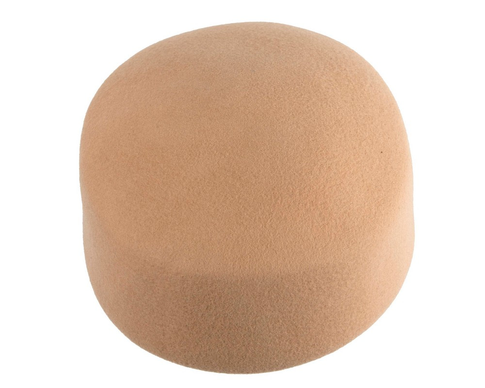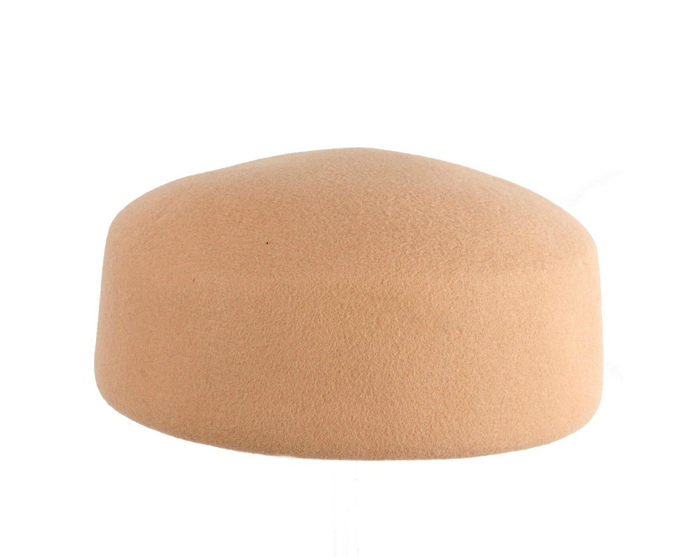 Large tall beige felt pillbox hat. Classic pillbox made from pure wool felt. Addition of hair elastic for easy wear.