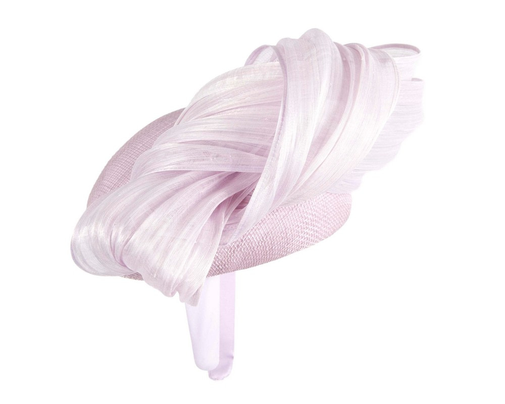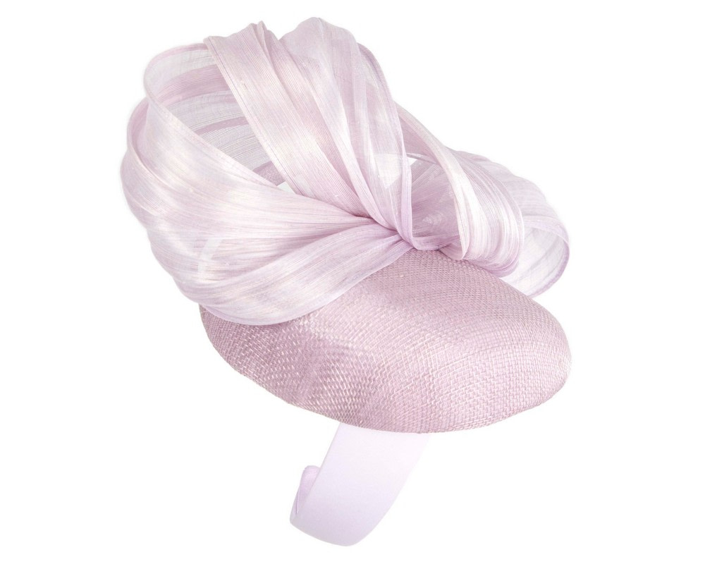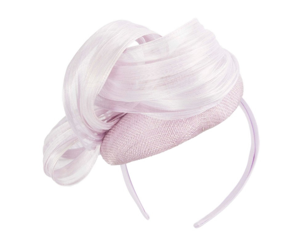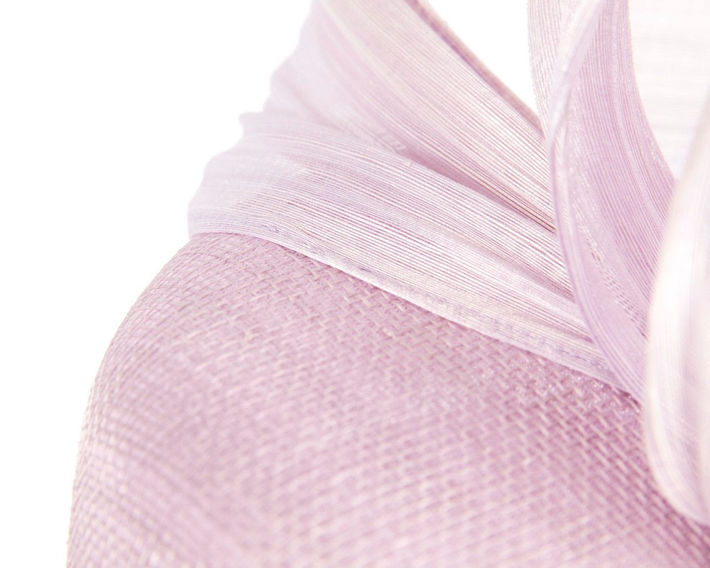 Stunning spring racing pillbox fascinator hat with large bow made from luxurious silk abaca fabric. This light lilac fascinator by Fillies Collection is made by our experienced milliners in the heart of Melbourne and we can match it to your racing outfit if required.