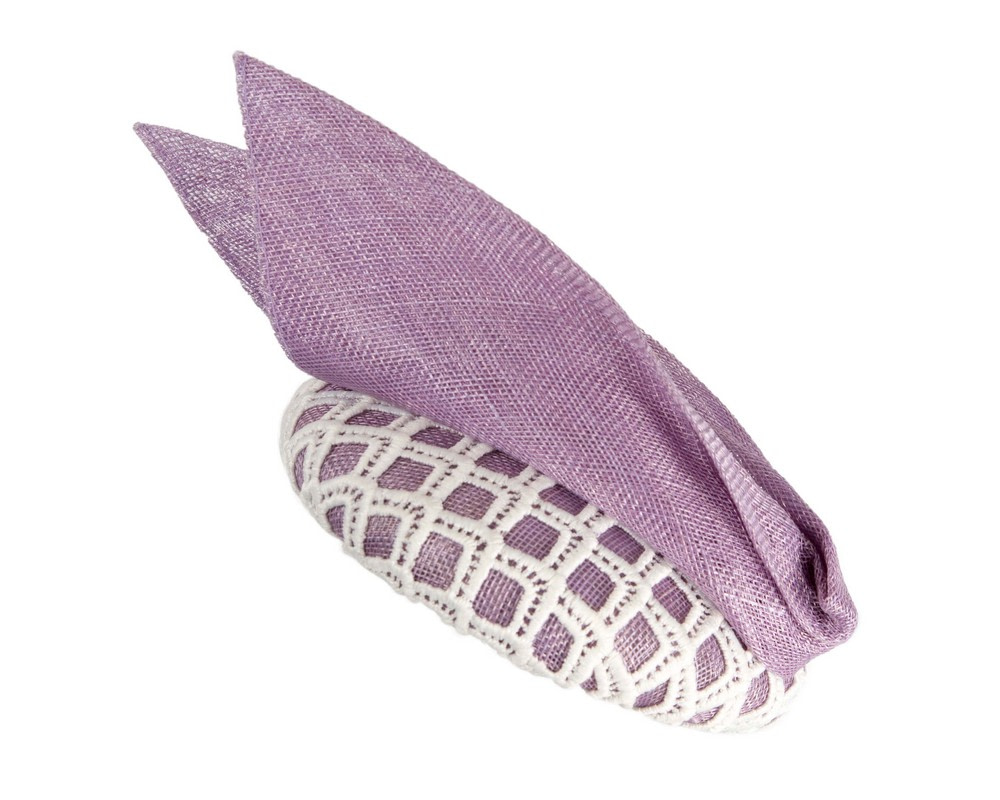 Lilac and white pillbox fascinator by BELIEVERA