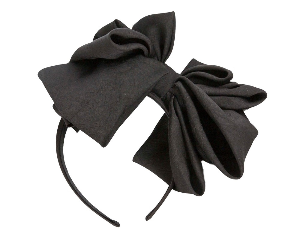 Black bow fascinator created by our experienced milliners in the heart of Melbourne. This soft bow placed on the headband will be a great addition to your next racing or special occasion outfit.