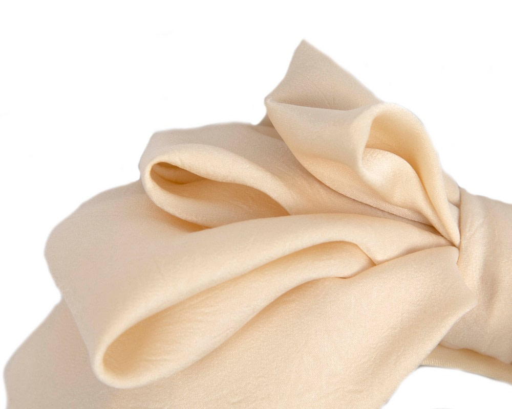 Cream bow fascinator created by our experienced milliners in the heart of Melbourne. This soft bow placed on the headband will be a great addition to your next racing or special occasion outfit.