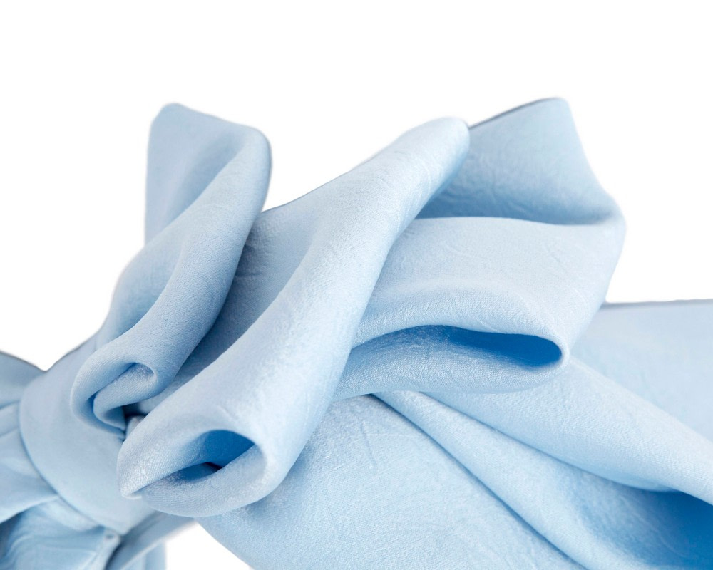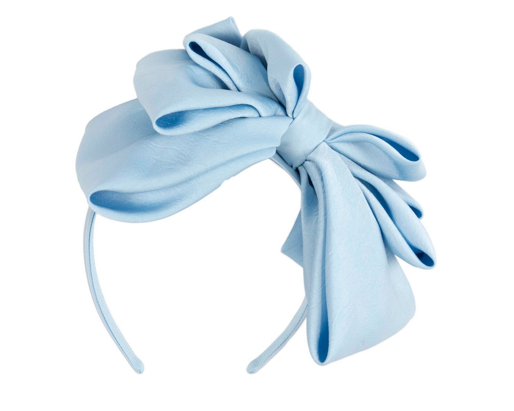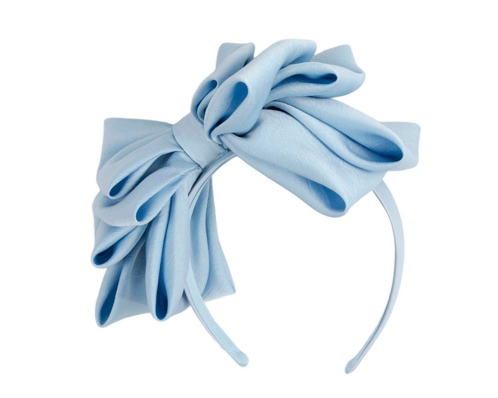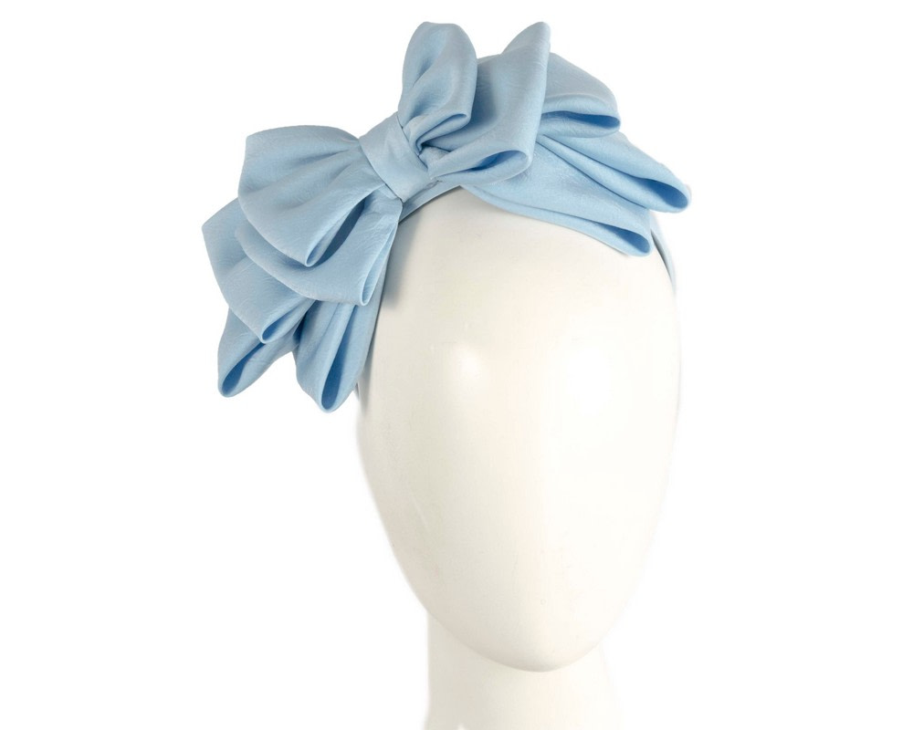 Light blue bow fascinator created by our experienced milliners in the heart of Melbourne. This soft bow placed on the headband will be a great addition to your next racing or special occasion outfit.