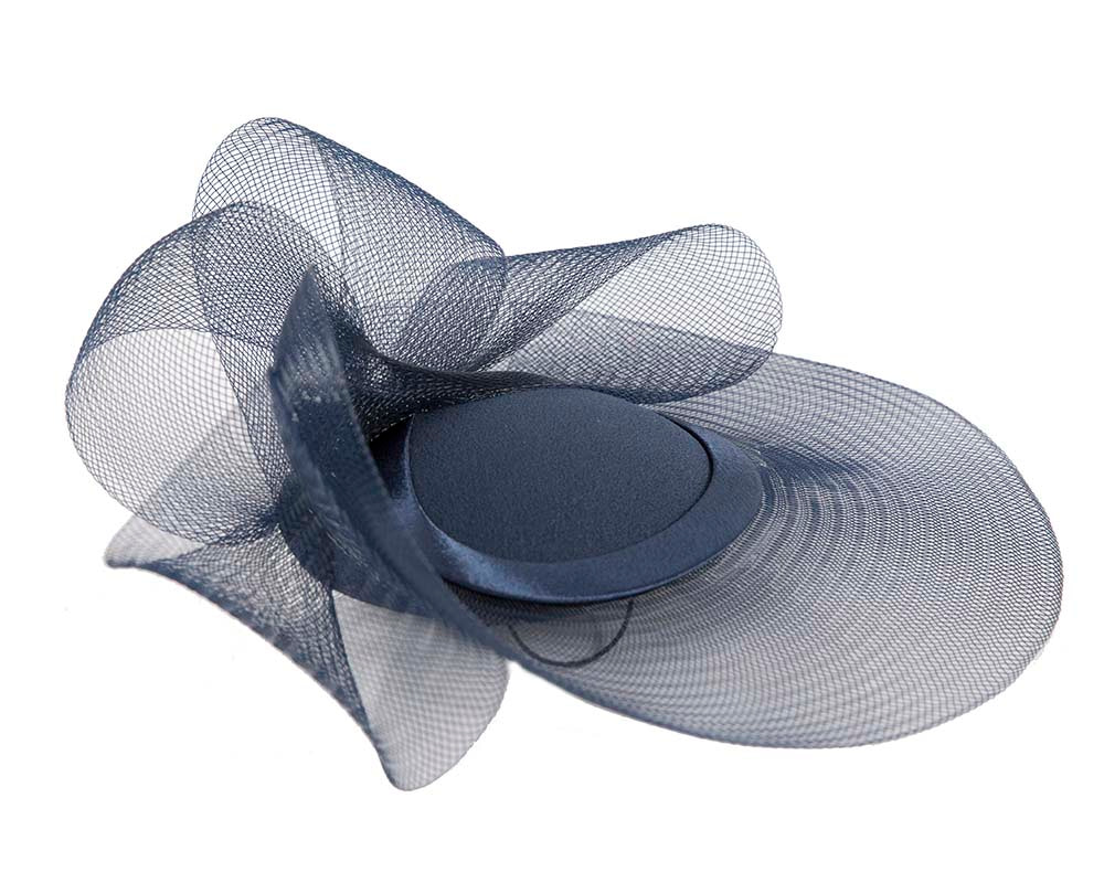 This gorgeous navy headpiece from our beautiful range of cocktail hats, headpieces and special occasion hats is custom made from luxurious fabric with crinoline brim and with comb for comfortable wearing. This hat is ideal for those special occasions such as weddings, Melbourne Cup and Ascot.