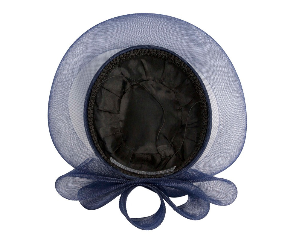 This stunning navy hat from our beautiful range of “mother of the bride”, evening, church and special occasion hats is hand made in Australia. This designer fashion hat is made to order and we can make it in any color to match your outfit.