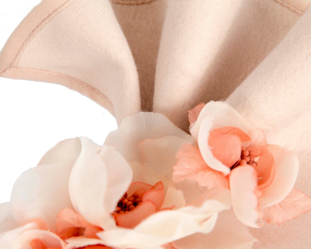 Beautiful nude fascinator with flower bunch from latest Fillies Collection. Fascinator is placed on the headband.