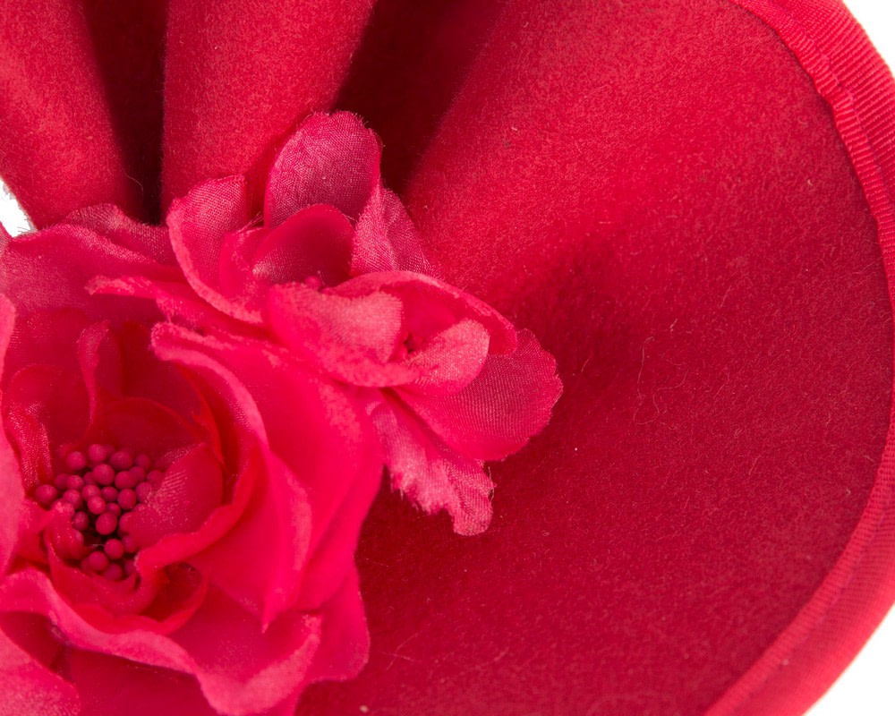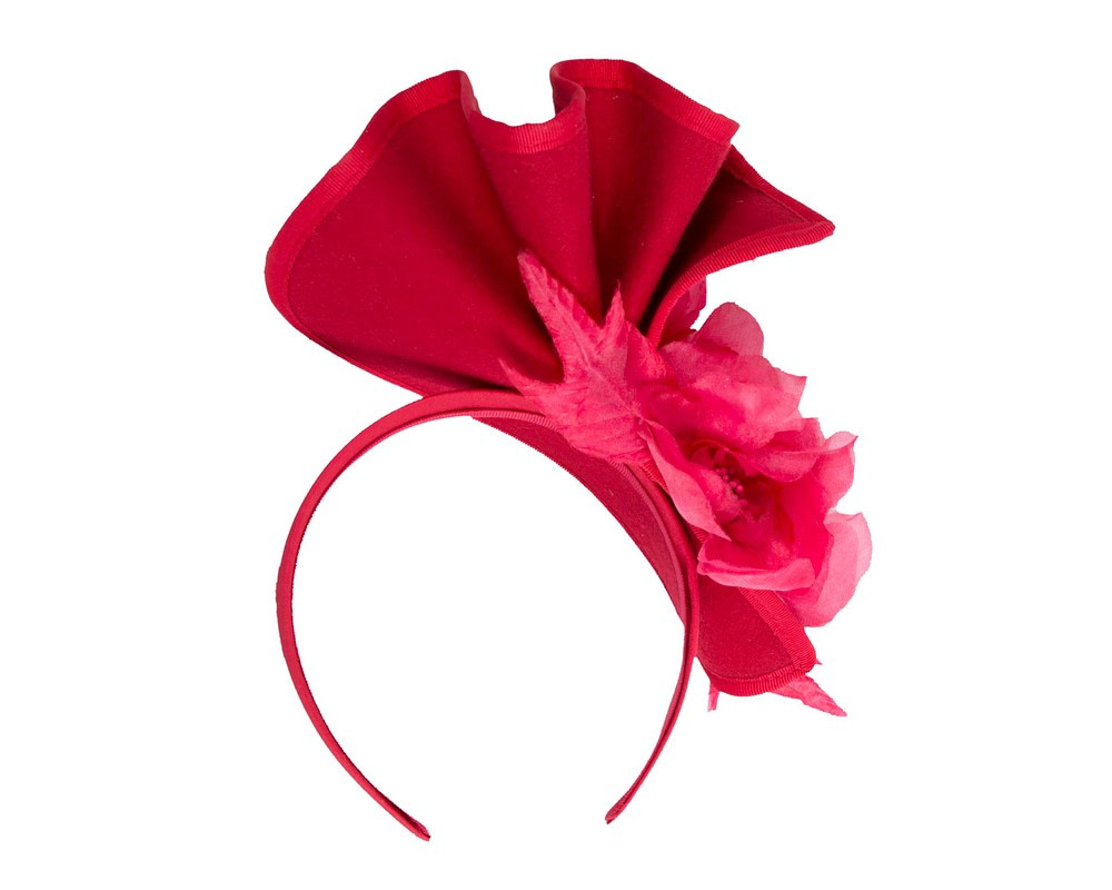 Beautiful red fascinator with flower bunch from latest Fillies Collection. Fascinator is placed on the headband.