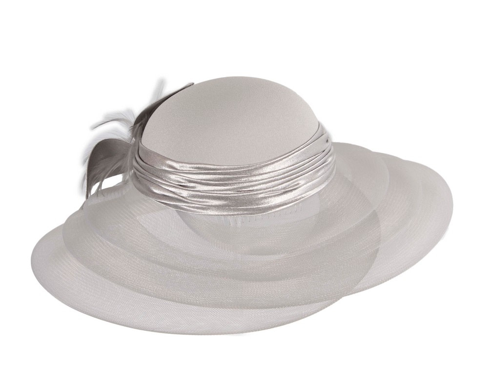 This stunning hat from our beautiful range of mother of the bride, evening, church and special occasion hats is hand made from luxurious fabric with crinoline brim and elegant trim. Hat is fully lined and has comb for comfortable wearing. This designer fashion hat is made to order and we can make it in many colours.