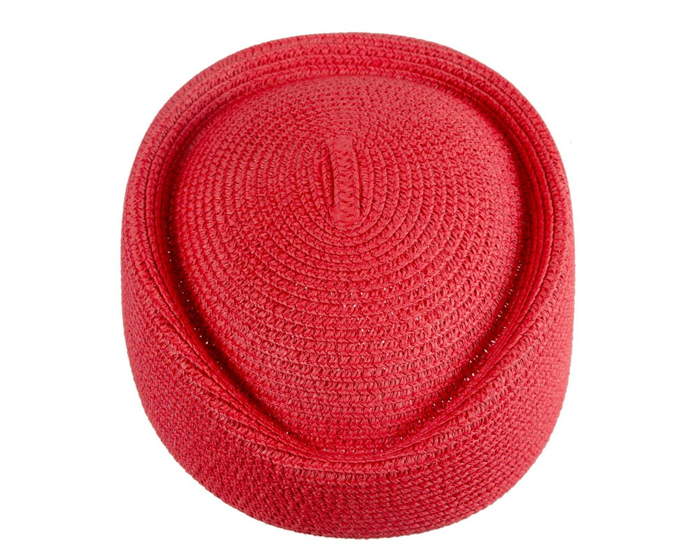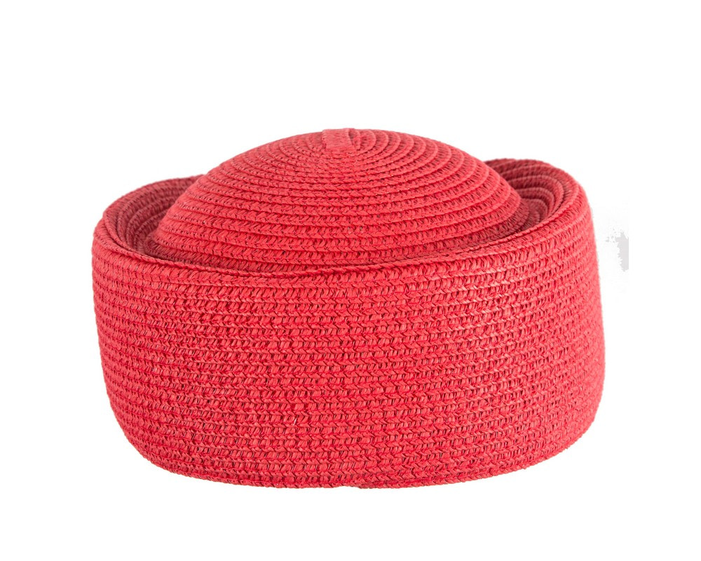 Stylish red stewardess pillbox hat by Max Alexander. This pillbox hat is made from quality braid. Hat cat be worn in multiple way.