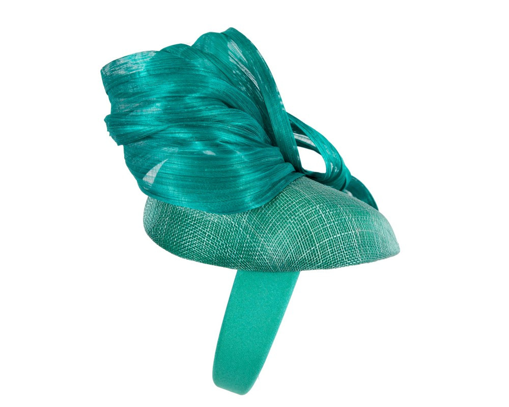 Teal pillbox fascinator with silk abaca bow by Fillies Collection S307TE
