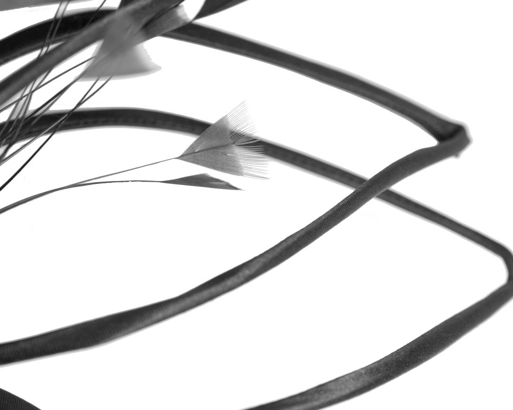 This fascinator from latest Max Alexander collection will be a jewels of your next racing outfit. Black wire sculpture with matching feathers on the headband.
