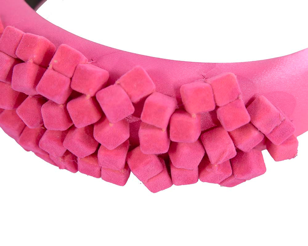 Fuchsia headband fascinator covered in geometric cubes. Perfect racing accessory.
