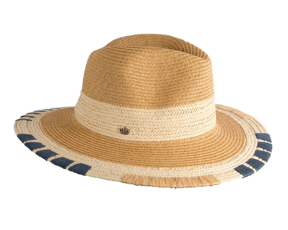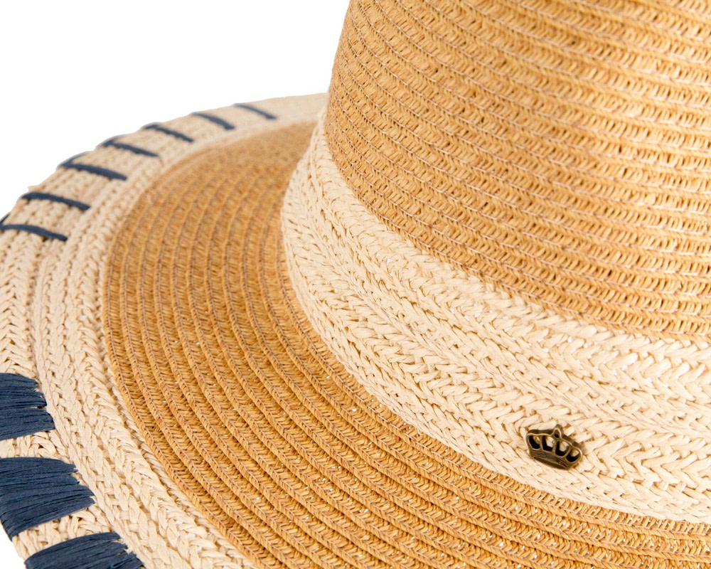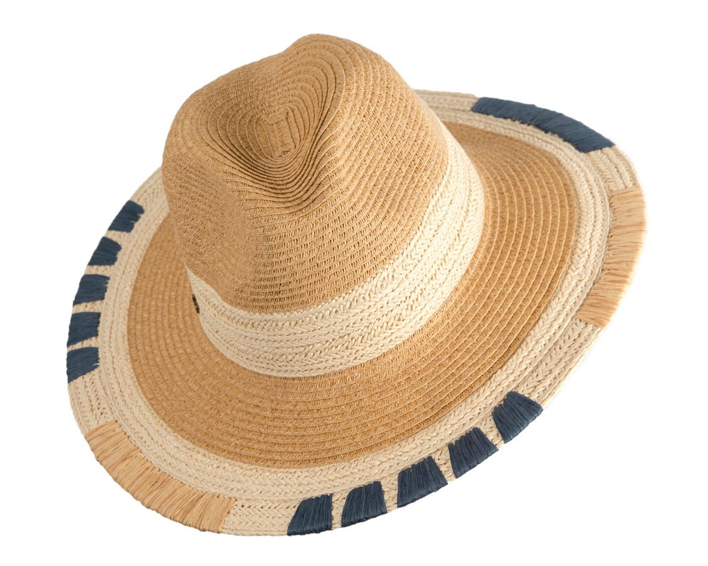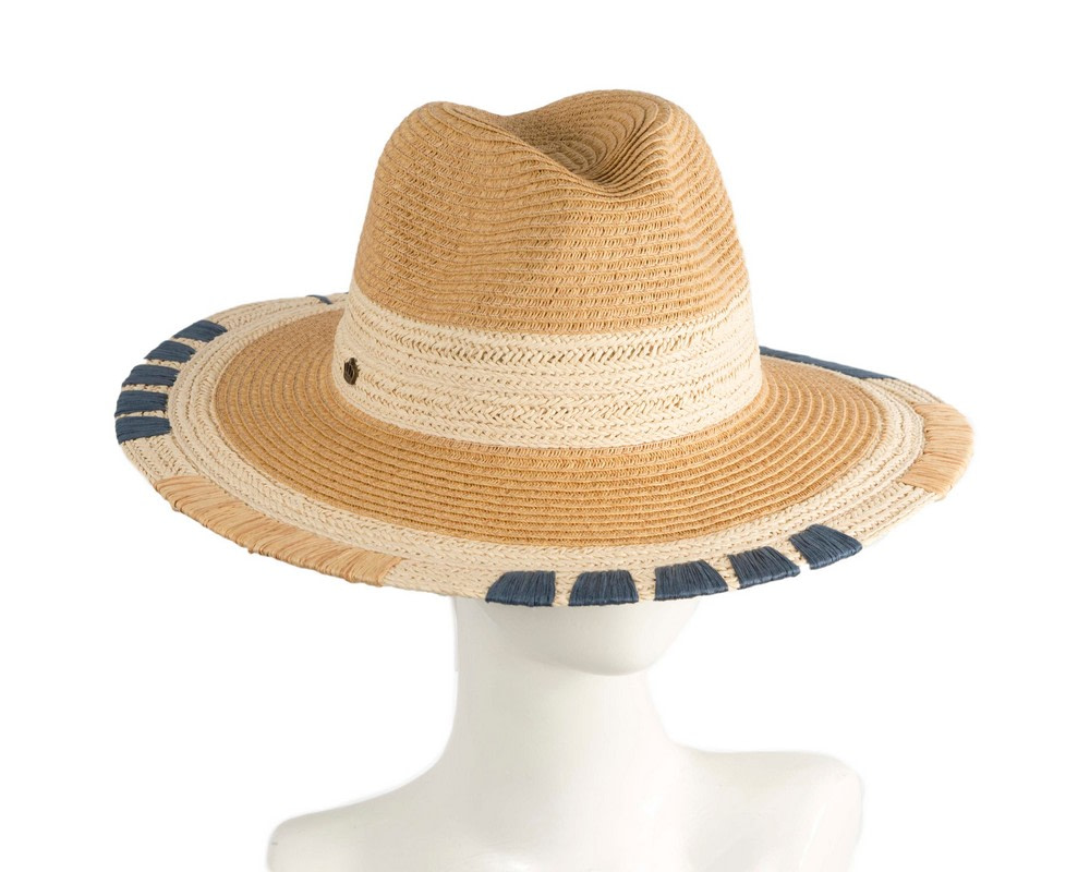 Hat is made from braid with different colors incorporated in brim and crown. Featuring classic fedora trilby shape with wide brim, hat will fit anyone and is a perfect choice for the hot summer days.