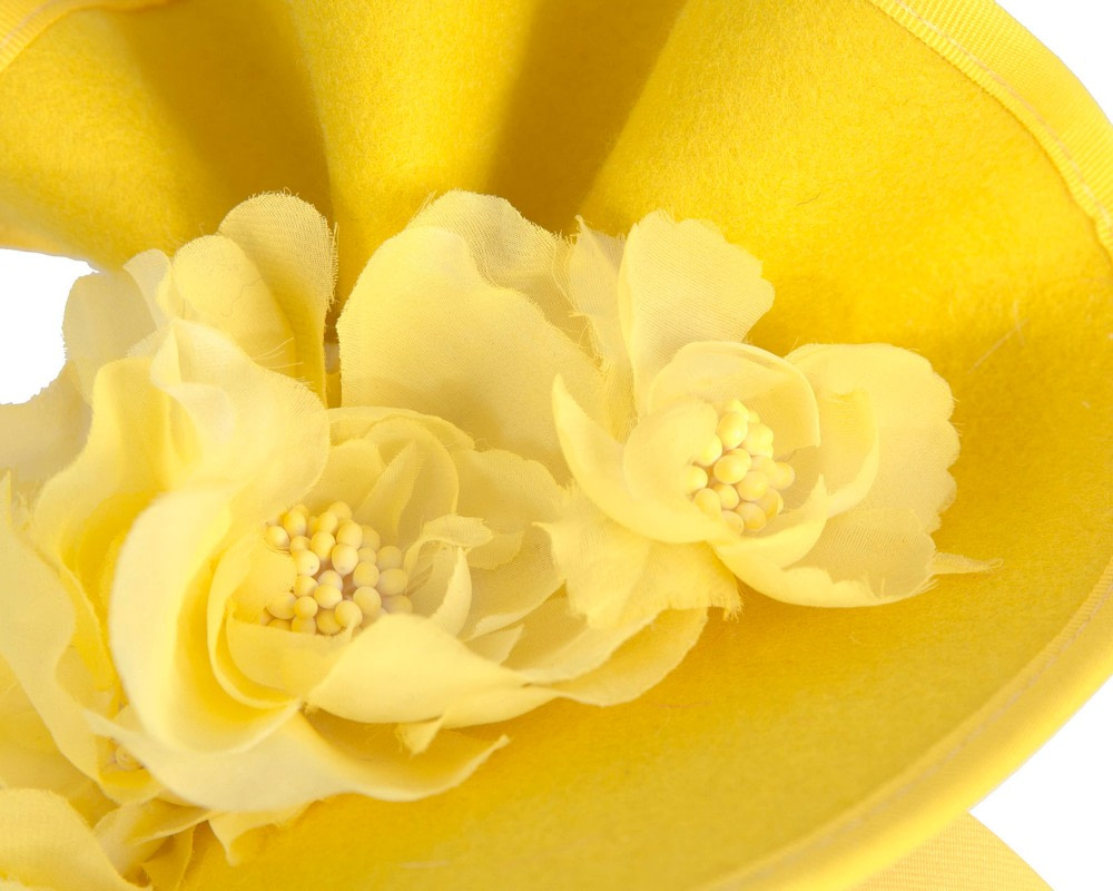 Beautiful yellow fascinator with flower bunch from latest Fillies Collection. Fascinator is placed on the headband.
